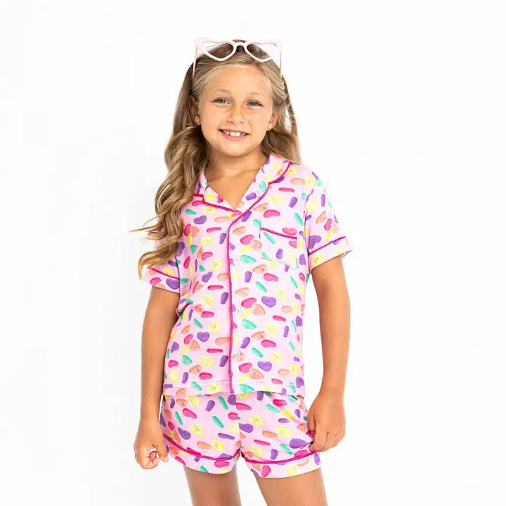 Preppy Goose Limeapple Girls Boys Short Pajamas Nightwear Sleepwear Candy Hearts The Plaid Giraffe Childrens Boutique