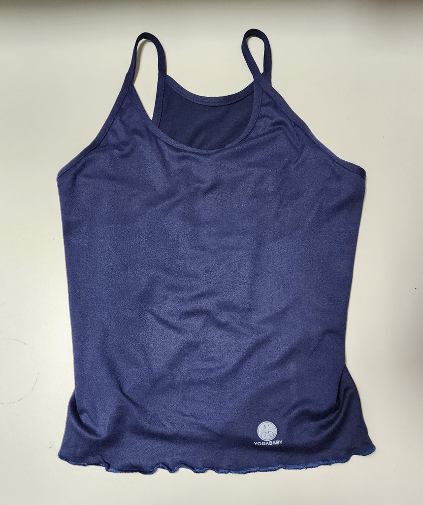 Razorback navy top from Yogababy featuring a 'lettuce' hem.